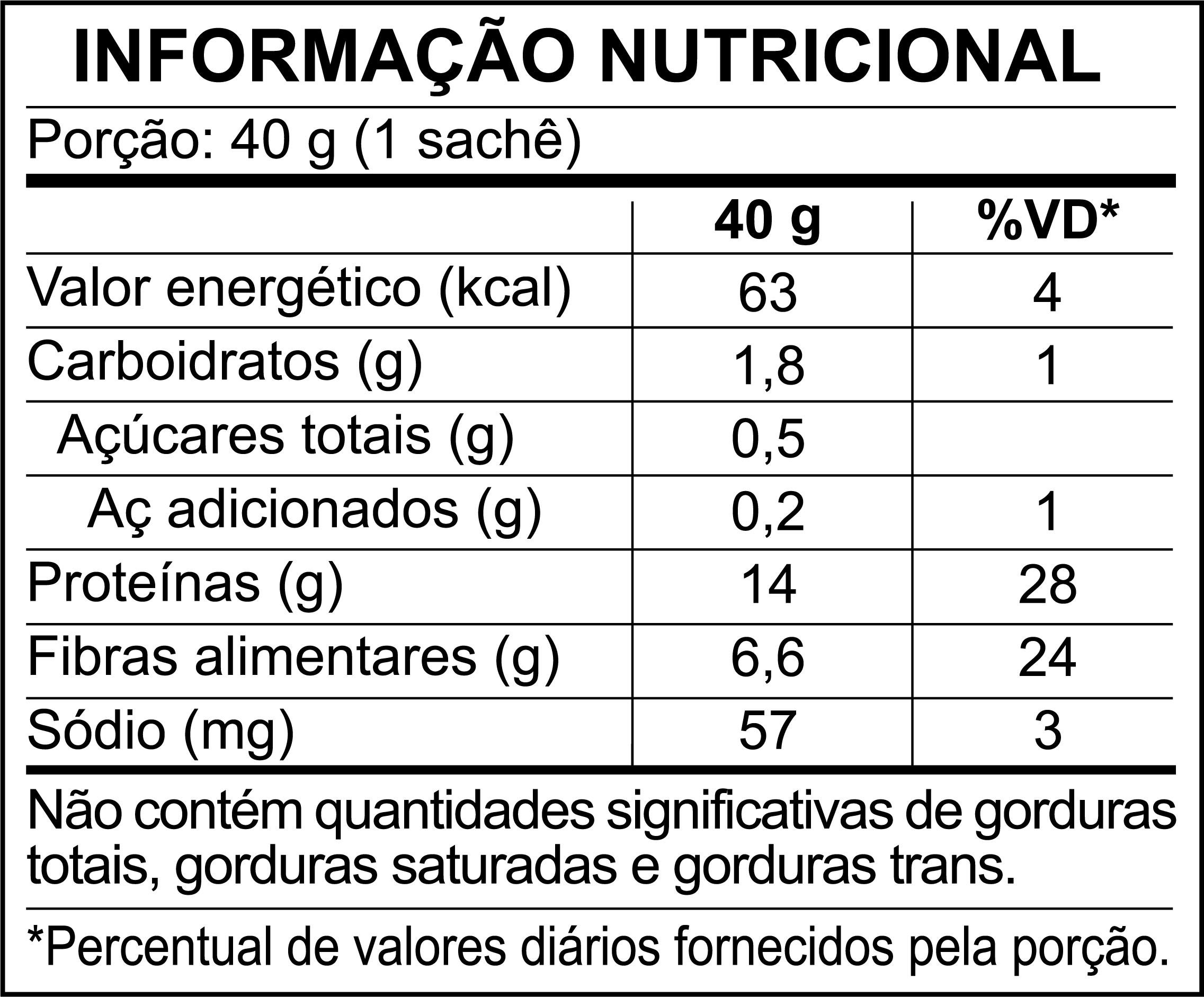 Cada porção fornece 14 g de proteína, contribuindo para o adequado aporte proteico diário, fundamental para: